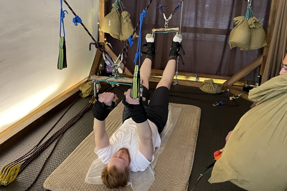 All the process happening on an antient device. This method of therapy is exceptional by the fact that customers are mostly in the air with thier limbs suspended, your body stretches naturally, without force, which has a positive effect on muscles, blood and lymph, psyche, muscular system, hormones and energy.